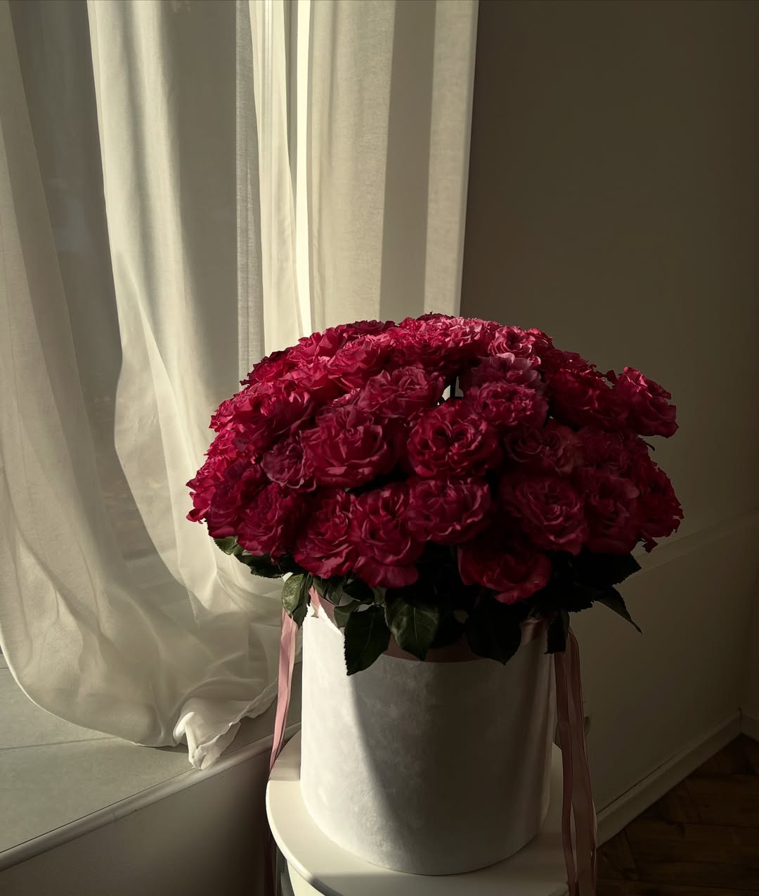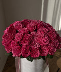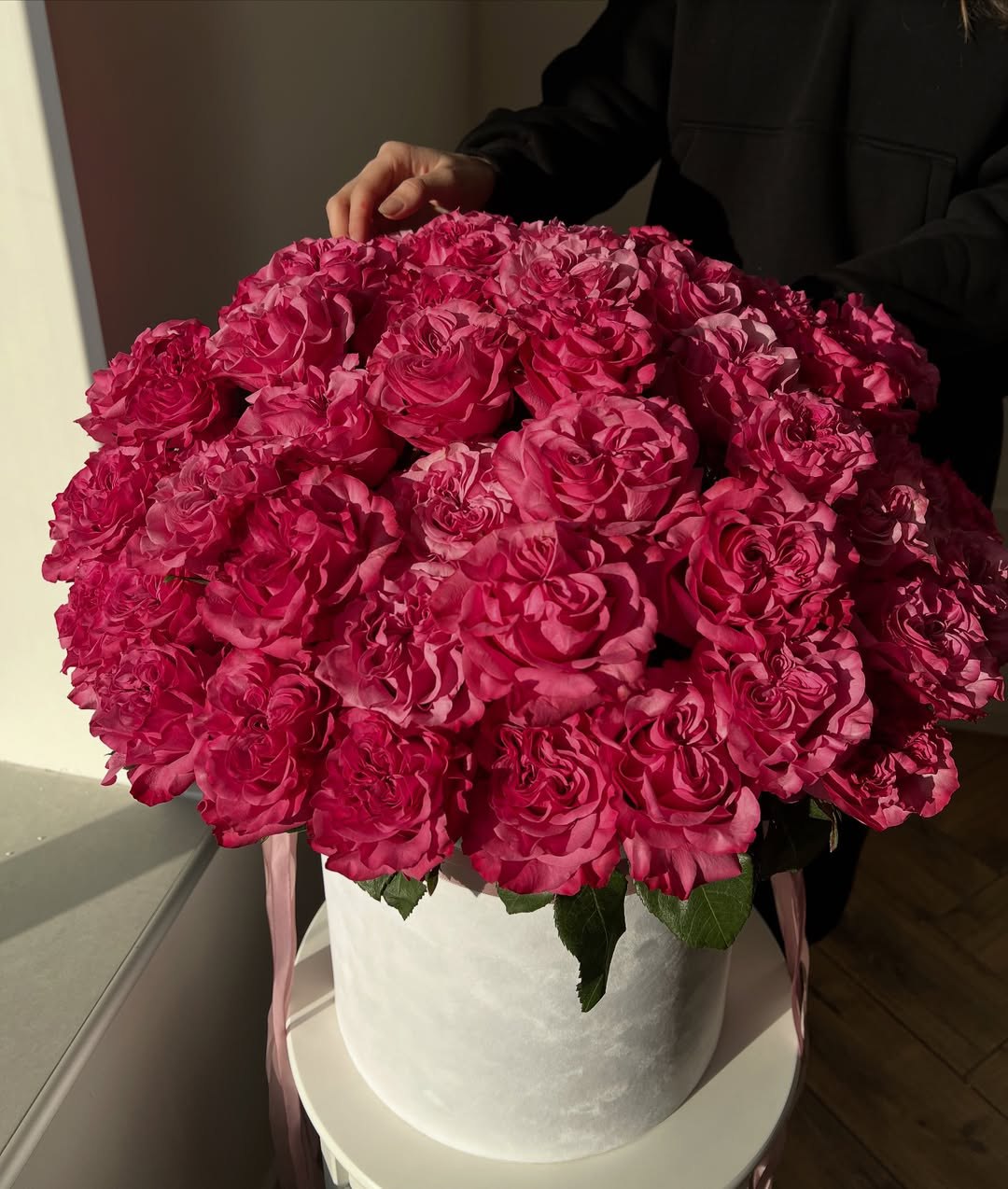Alexandra is a charming flower arrangement with 50 garden roses in a box. Make someone's day brighter ordering flower delivery from a local florist Amelie. This bright flower arrangement will be a perfect choice for birthday, anniversary, any holiday or just because.