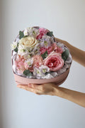 Please note that flowers used may vary based on stock and availability, and the color of the box may also differ. If you have specific preferences, kindly specify them in the order notes for the florist