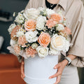 Soft, sweet, and full of charm, the Aurore Box features a delightful mix of roses, delicate spray roses, vibrant carnations, cheerful daisies, and aromatic eucalyptus. The beautiful blend of soft pinks, whites, and greens creates a warm and welcoming arrangement, perfect for birthdays, anniversaries, or simply showing someone you care.
