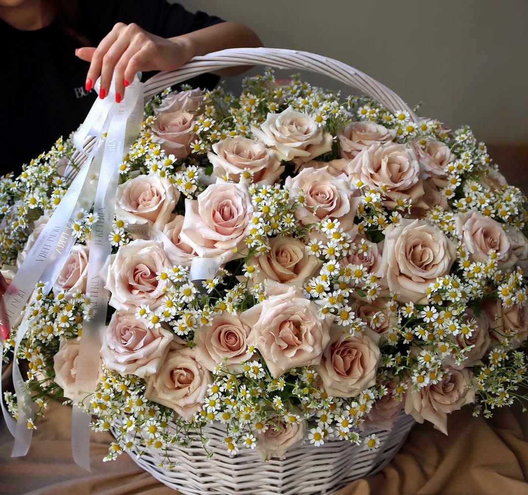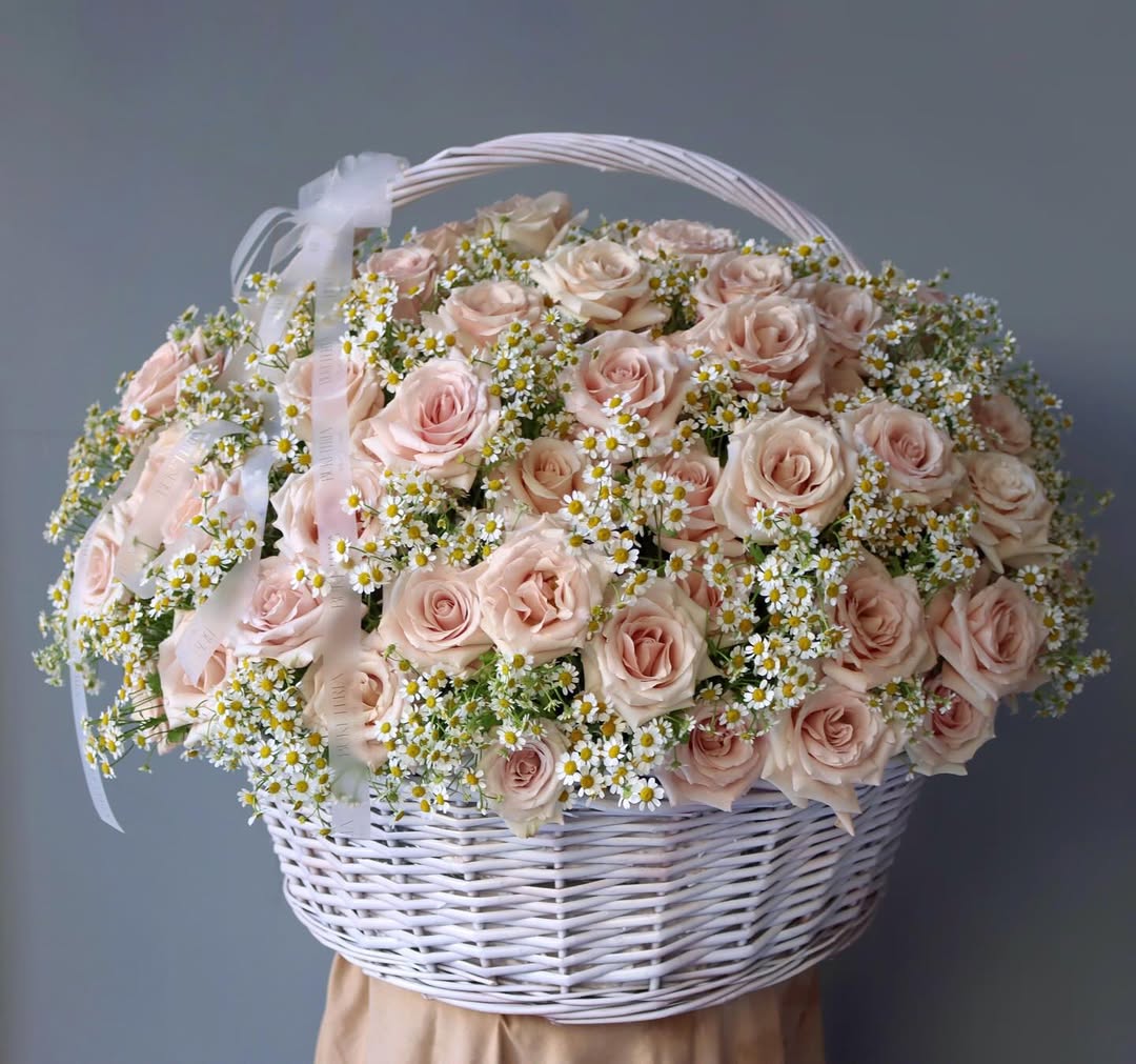 Brighten someone’s day with our Large Florence Basket, a stunning floral arrangement featuring pink garden roses and delicate white daisies (camomiles). This charming basket combines lush blooms with soft greenery for a fresh, romantic, and uplifting display. Perfect for birthdays, anniversaries, celebrations, or as a thoughtful gift, its pastel tones and layered textures make a lasting impression.