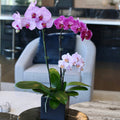 Quiet Grace features a stunning mix of three orchids artfully arranged in a stylish ceramic vase. This elegant and long-lasting display is perfect for Mother’s Day, Easter, or any special moment, offering a modern, eco-conscious touch of beauty.
