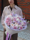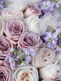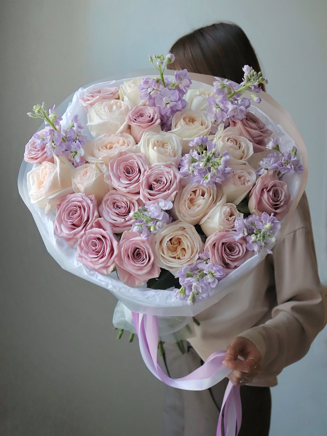 Yolande Bouquet is a luxurious combination of lavender stock, purple roses, and white roses, designed to create a stunning and fragrant arrangement. This elegant bouquet is perfect for anniversaries, birthdays, romantic occasions, or simply to surprise someone special with fresh, premium flowers.